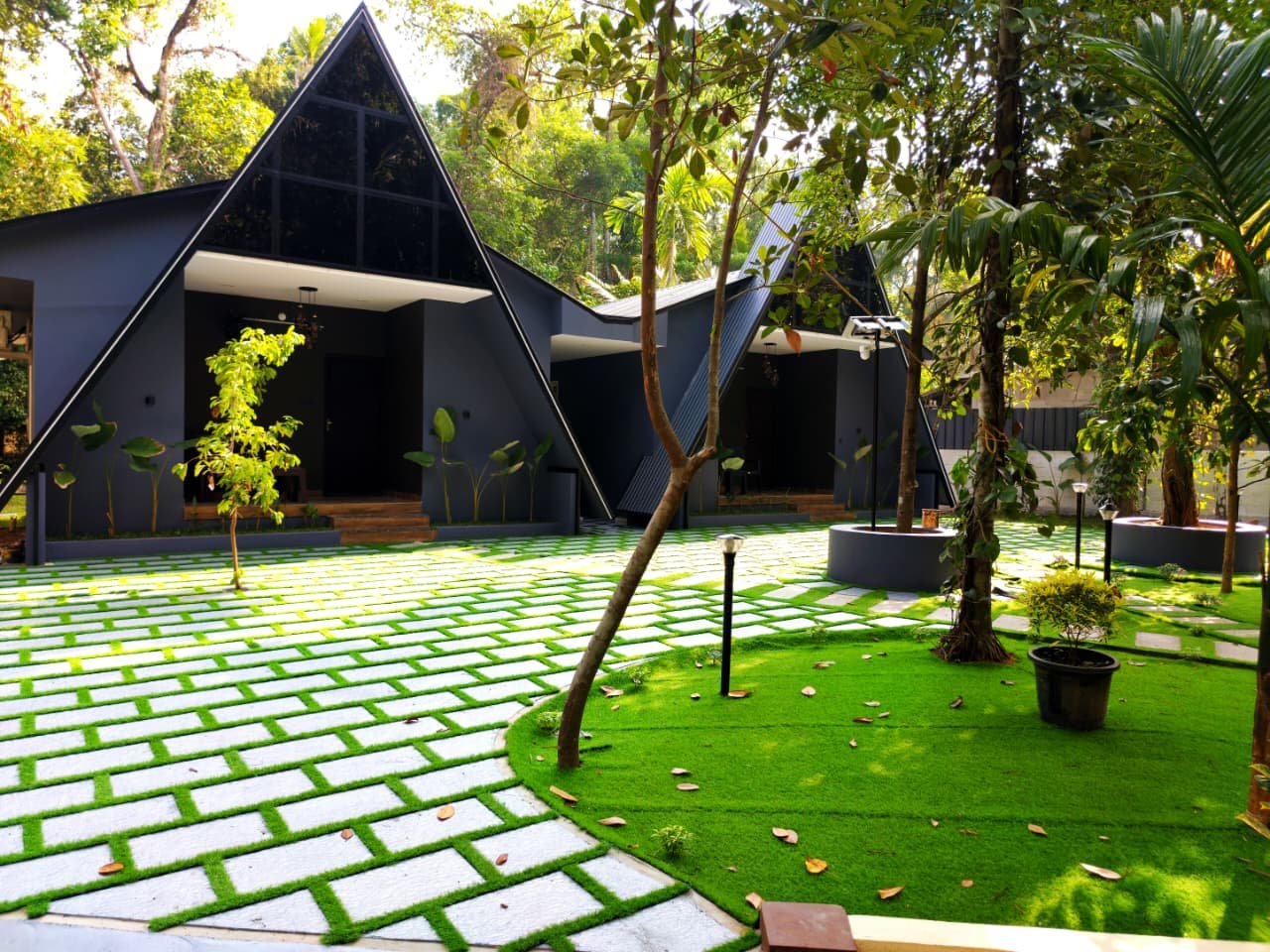 Our A-frame cottages provide a unique architectural experience combined with the rustic charm of Kerala's backwaters.